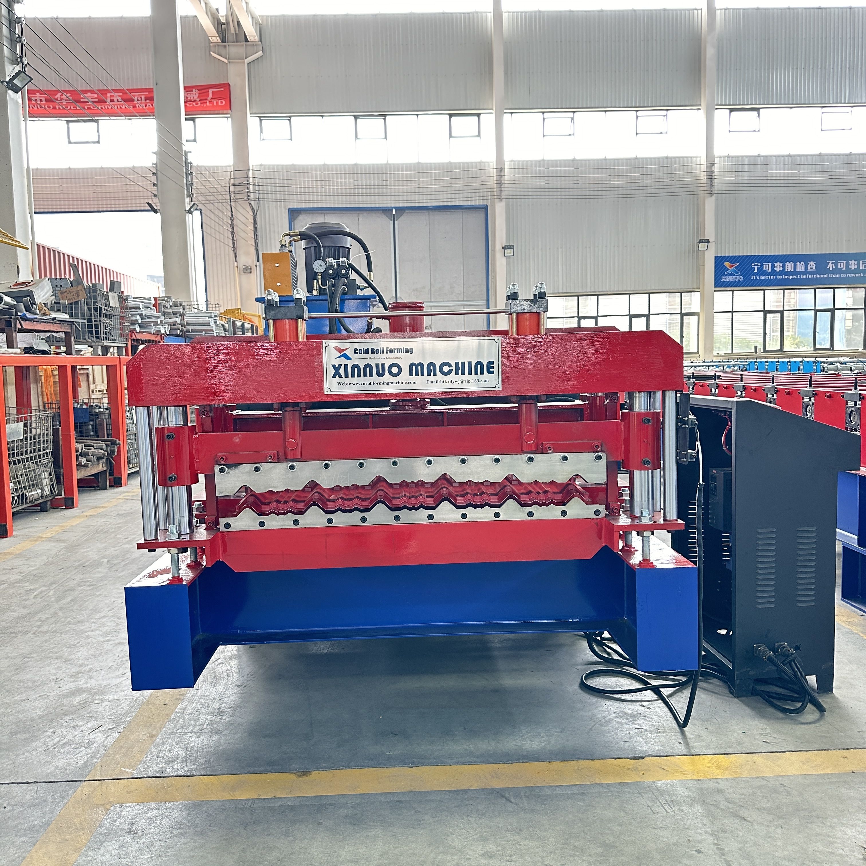 At XINNUO Roll Forming Machine, customer needs always come first. As a trusted manufacturer with strong production capacity and advanced facilities, we deliver machines that combine precision, durability, and efficiency — especially our stepped tile roll forming machine, which is designed for stable and accurate roof tile production.